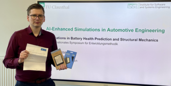 Auch das ISSE war mit Dr. Stefan Wittek mit einem Beitrag zum Thema „AI-Enhanced Simulations in Automotive Engineering“ vertreten und fesselte die Zuschauer mit zwei Fallbeispielen: Batterielebensdauervorhersage und Struktur und Mechanik. Dieser Vortrag hat dem Publikum so gefallen, dass Dr. Stefan Wittek den Preis für den besten Vortrag des Symposiums erhalten hat. Dieser umfasste eine Urkunde sowie ein Kindle mit passender Hülle.